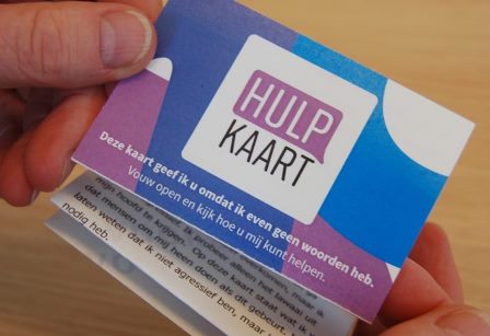 De Hulpkaart is een uitvouwbaar, papieren briefje ter grootte van een pasje. Het past in je portemonnee.