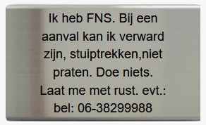 Je kunt er veel informatie op kwijt, zoals uitleg over FNS, over jouw aanval, wat mensen moeten doen en wie ze kunnen bellen.
