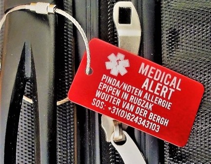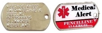 Rechts staat een grotere tag met 8 regels tekst en een medische bedel eraan.