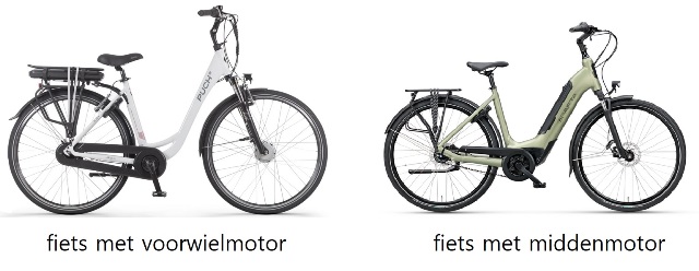 De bekendste en meest geziene fiets is die met de middenmotor. Hier zit de motor in het midden bij de pedalen. Deze motor vermeerderd eigenlijk de kracht die je zelf zet. Dus als je langzaam en rustig fietst, ondersteunt hij een beetje. En als je stevig doortrapt ondersteunt hij meer. Zie het als een optelsom: als jij 1 kracht zet, helpt de motor met 1. En als jij 5 kracht zet helpt de motor met 5.