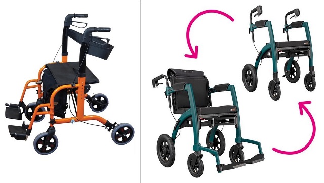 | rollator/rolstoel Er zijn nu ook rollators die je in een eenvoudige transportrolstoel kunt veranderen. Heel fijn als je slecht loopt maar toch zoveel mogelijk zelf wilt lopen. En gaat het niet, dan ga je in de rolstoel verder. De goedkoopste is nog geen 200 euro, de duurdere meer dan 1.000 | ![]() |