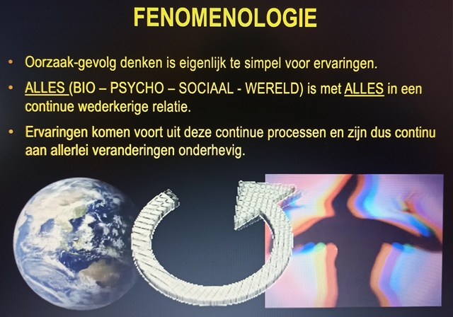 Wanneer je kijkt naar een ervaring, en niet alleen naar een feit, kijk je naar het geheel. Je luistert dus ook naar een heel verhaal van een patiënt, en je kijkt niet alleen naar de uitslag van een bloedtest of een mri. Hierdoor zie je de mens als een systeem met allerlei onderdelen die samen 1 geheel vormen.
