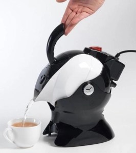 Een tipping kettle is een waterkoker die je niet hoeft op te tillen, maar die kiept waardoor je zo water in je kopje kunt doen. Zie foto hiernaast.