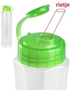 “Ik heb een waterfles voor slechte dagen. Eentje met een hele kleine opening zodat, als ik de fles uit mijn handen laat vallen, de limonade niet meteen eruit loopt. Ik heb expres er niet eentje met een rietje eraan vast omdat je dat heel moeilijk schoon kunt maken. Maar ik kan er wel een los rietje in doen zodat ik makkelijker kan drinken en ik de fles niet hoef te bewegen.”