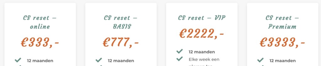 Kortom: bij CS Expert Coaching weten ze niets van FNS en niets van psychologie. Hun behandeling is, zoals ze schrijven, gericht op de 5 lichamen in elk mens: je fysieke, mentale, emotionele, spirituele en energetische lichaam. Als jouw FNS duidelijk voort komt uit een trauma, je niet gelooft in moderne geneeskunde, je je fysieke problemen niet door een fysiotherapeut wilt laten behandelen en volledig gelooft in de helende kracht van spiritualiteit, dan kunnen deze dames wellicht iets voor je betekenen. Hun behandeling wordt trouwens niet vergoed door een verzekeraar en kan flink oplopen in de kosten: